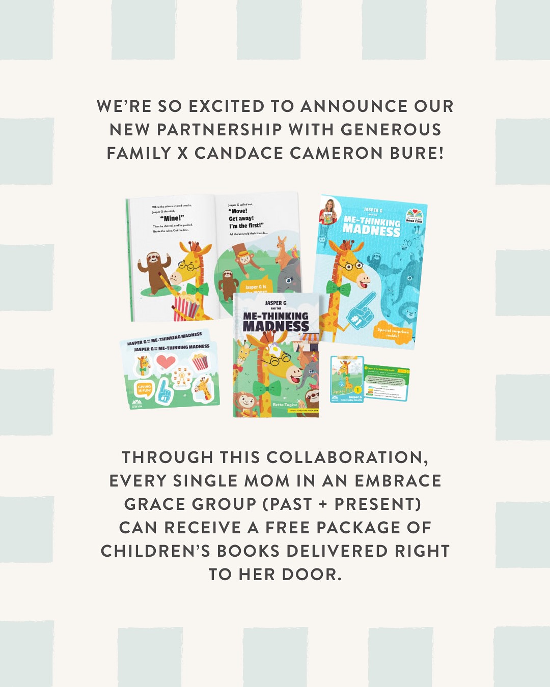 “Together, we’ll be blessing every Brave Mom currently or previously in an Embrace Grace group with a free gift of children’s books - designed to inspire love, kindness, and generosity in the next generation,” the announcement continued, then thanking Generous Family and Bure “for helping us love and support single moms in such a meaningful way.”
