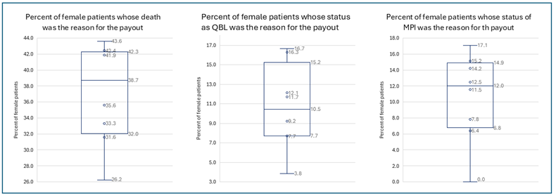 Table 2: The number of payouts for varying levels of severity of the claim by state. QBL means quadriplegic, brain dead, or lifelong care. MPI means major permanent injury.