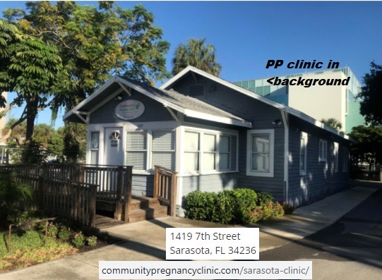 The Sarasota, Fla., site of Community Pregnancy Clinics also shares a parking lot with Planned Parenthood.