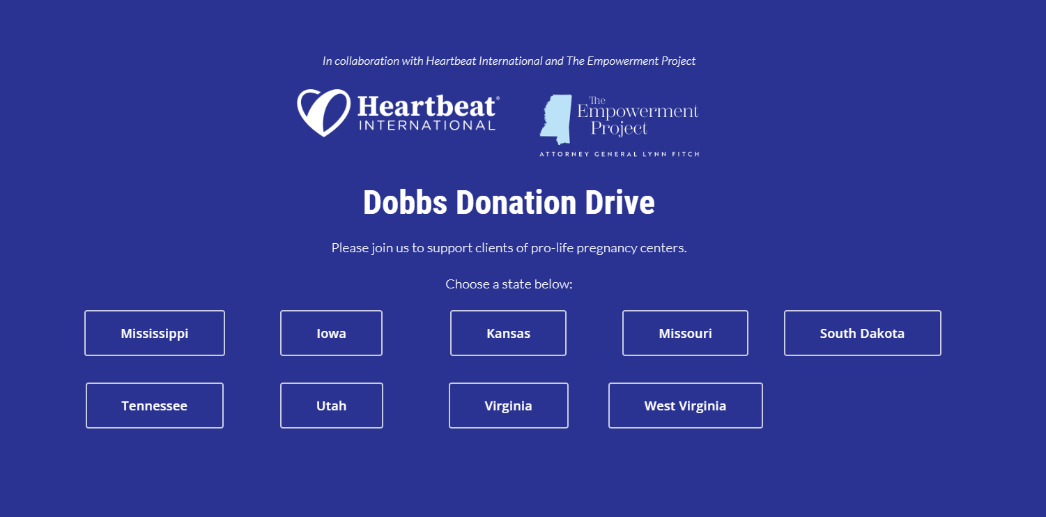 The largest network of pregnancy help in the U.S. and the world is taking part in a multi-state pregnancy help outreach to celebrate the first anniversary of the overturn of Roe v. Wade. Heartbeat International at the invitation of the Mississippi Attorney General Lynn Fitch is joining Fitch, Her PLAN, and eight other state AGs for a donation drive to support more than 60 pregnancy centers across the U.S. The drive was originally planned to run from June 20-24 but has been extended to July 1.