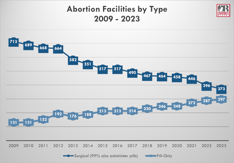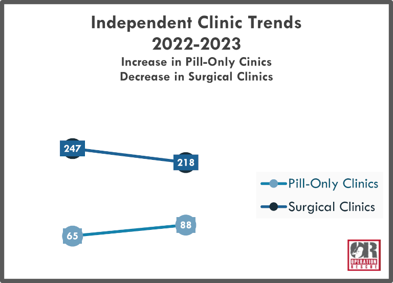 Since 2009, Operation Rescue has documented a continued shift away from surgical abortion clinics, while pill-only clinics continue to increase in number.