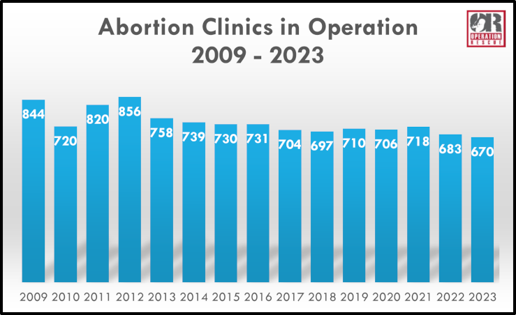 “This is a huge 69% decrease since 1991 when 2,176 abortion clinics were operating,” said Operation Rescue President Troy Newman. “The overturn of Roe v. Wade is undoubtedly saving lives. And the enduring efforts of faithful Americans on the pro-life side are paying off and having a winning effect.