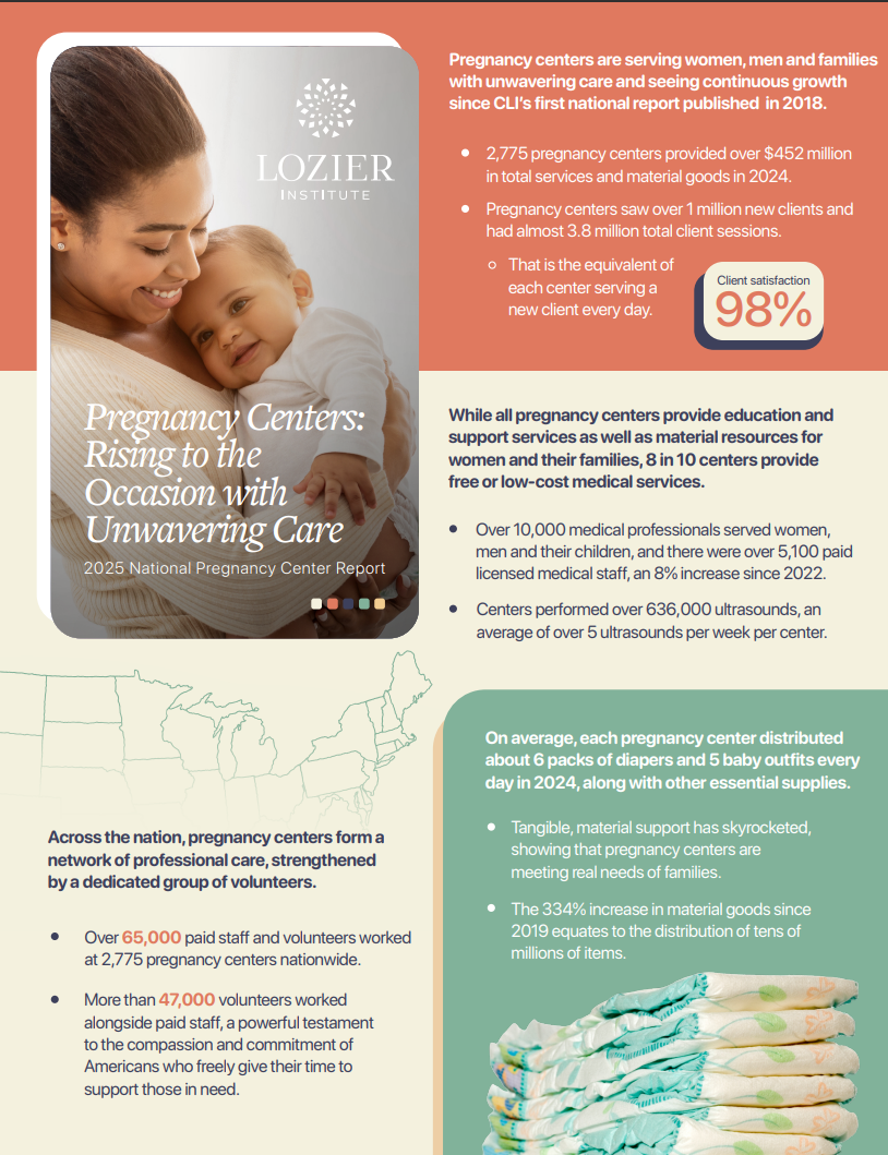 “The 2025 National Pregnancy Center Report details the increases in a wide range of services,” Prol Smith added, “but it illustrates something that’s harder to quantify - compassionate care that makes parenthood possible and even joyful.”