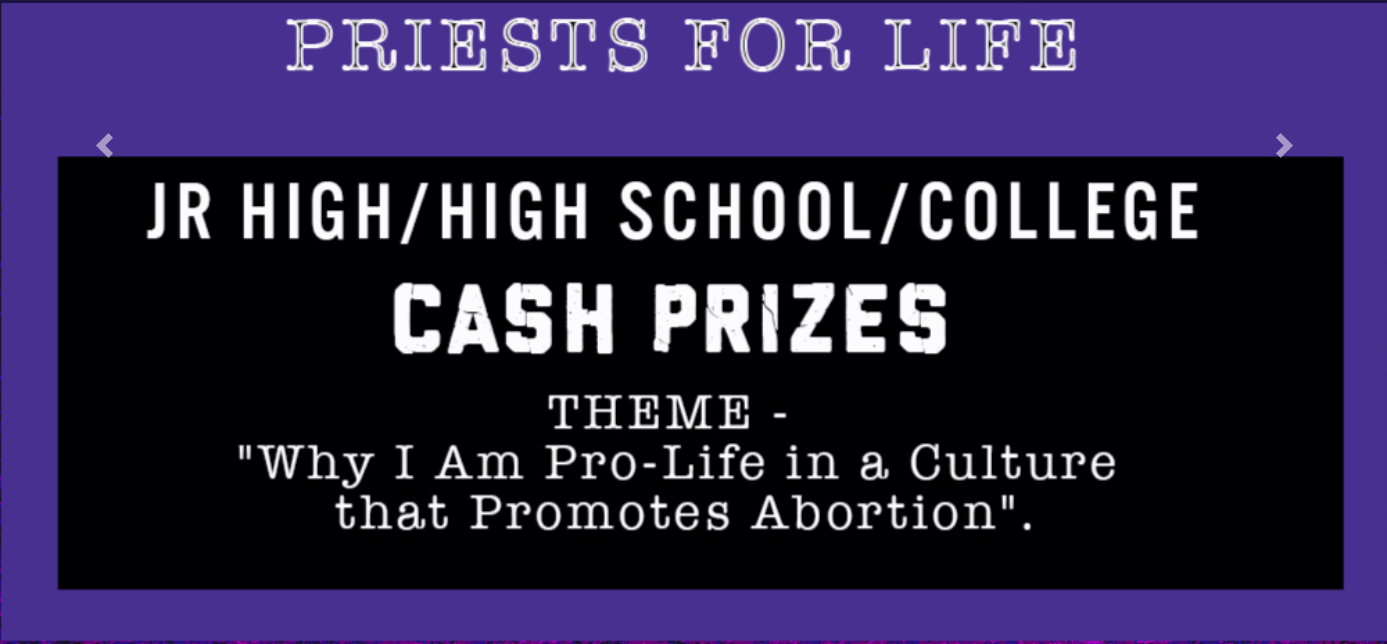The contest is open to students in junior high, high school, and college who attend public and private schools as well as those who are homeschooled. This year’s essay topic is Why I Am Pro-Life in a Culture that Promotes Abortion.