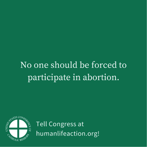 - Contact your Congressional representatives () and urge them to pass the Conscience Protection Act.