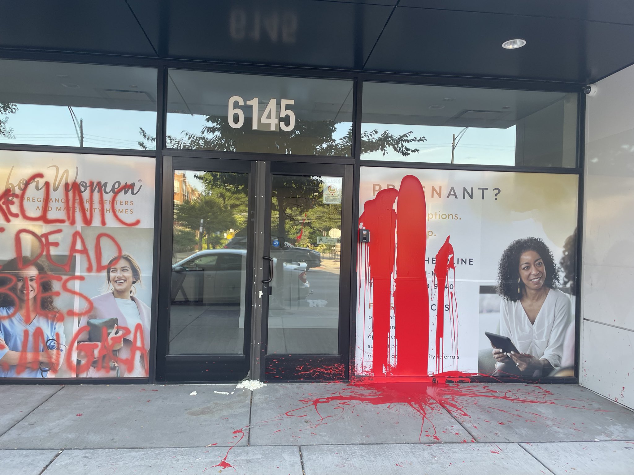 (National Review) After the conclusion of the Democratic National Convention, a pro-life pregnancy center in Chicago was vandalized. Aid for Women is a pro-life nonprofit that was started in 1978. It runs two maternity homes and five pregnancy centers in the Chicago area. Early Friday morning, red paint resembling blood was splattered on one of the Chicago locations. The doors were cemented shut and vandals spray painted the words “fake clinics” and “the dead babies are in Gaza” near the center’s entrance. Because of the vandalism, Aid for Women had to cancel Friday appointments with women seeking assistance.