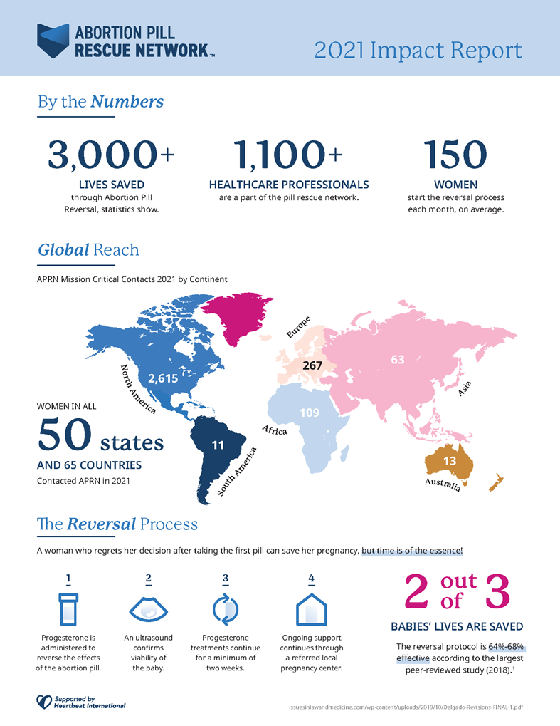 • 3,000+ lives have been saved (and counting) through Abortion Pill Reversal, statistics show.