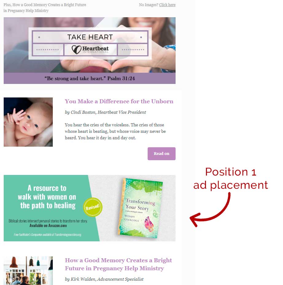Email adsales@pregnancyhelpnews.com to inquire about purchasing ad space either at PregnancyHelpNews.com or in the Heartbeat International e-publications.