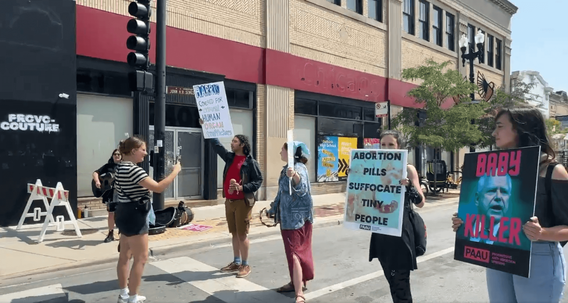 PAAU protesters were at the Democratic National Convention (DNC) in Chicago last month, bearing placards reading, ‘Kamala is a Baby Killer Cop,’ ‘Queer rights begin at Conception,’ ‘Abortion pills Suffocate tiny People,’ and, ‘Embryos are people and Abortion is Murder.’
