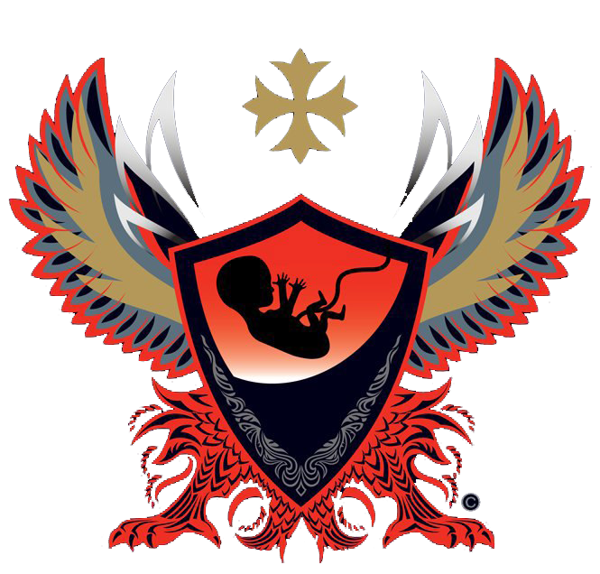 The leather jackets they wear are emblazoned with a beautiful image on the back of an unborn baby on a shield, under a cross and surrounded by eagles’ wings.