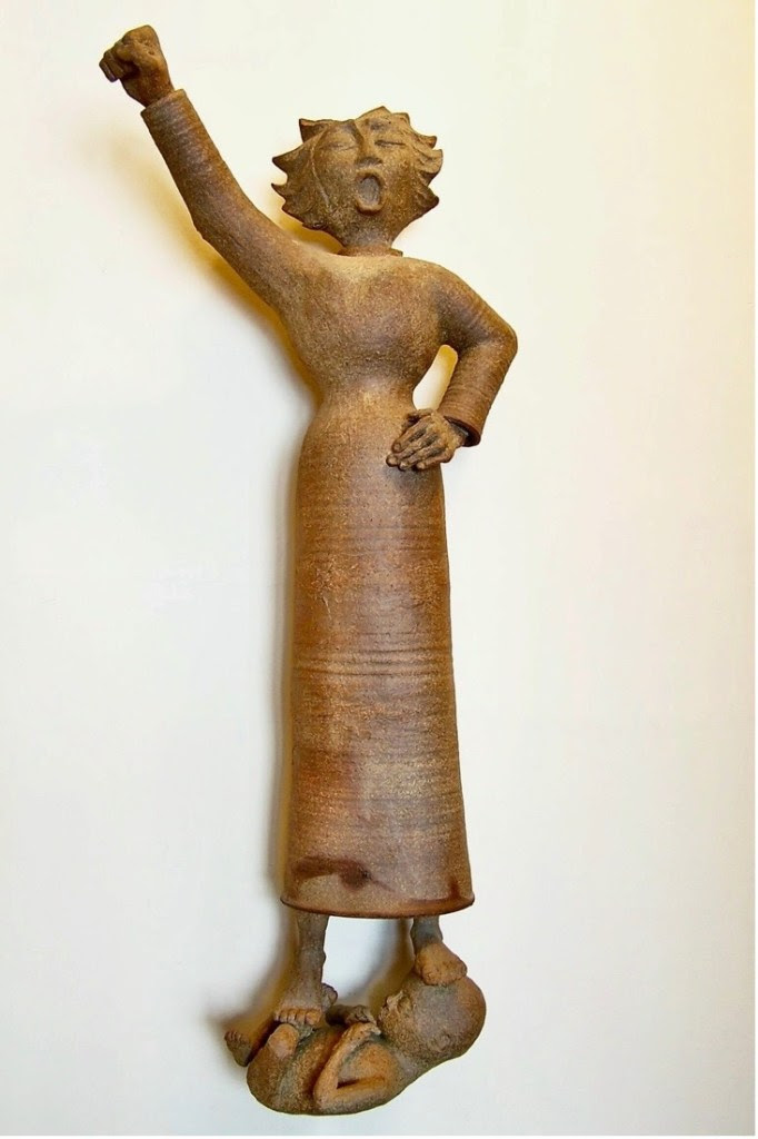 American sculptor Rosemarie Tischer Stith, a child refugee from the WWII bombings of German cities, foresaw the great shout for abortion back in 1973. Her 36-inch ceramic, “Triumph,” depicts a woman — standing tall in victory — her left hand on her hip and her right fist thrust into the air. Her head and hair are back. Her eyes are closed. Her mouth is open in a cry of triumph. Her chest swells in exultation, while her peculiarly elongated legs raise her pridefully high.