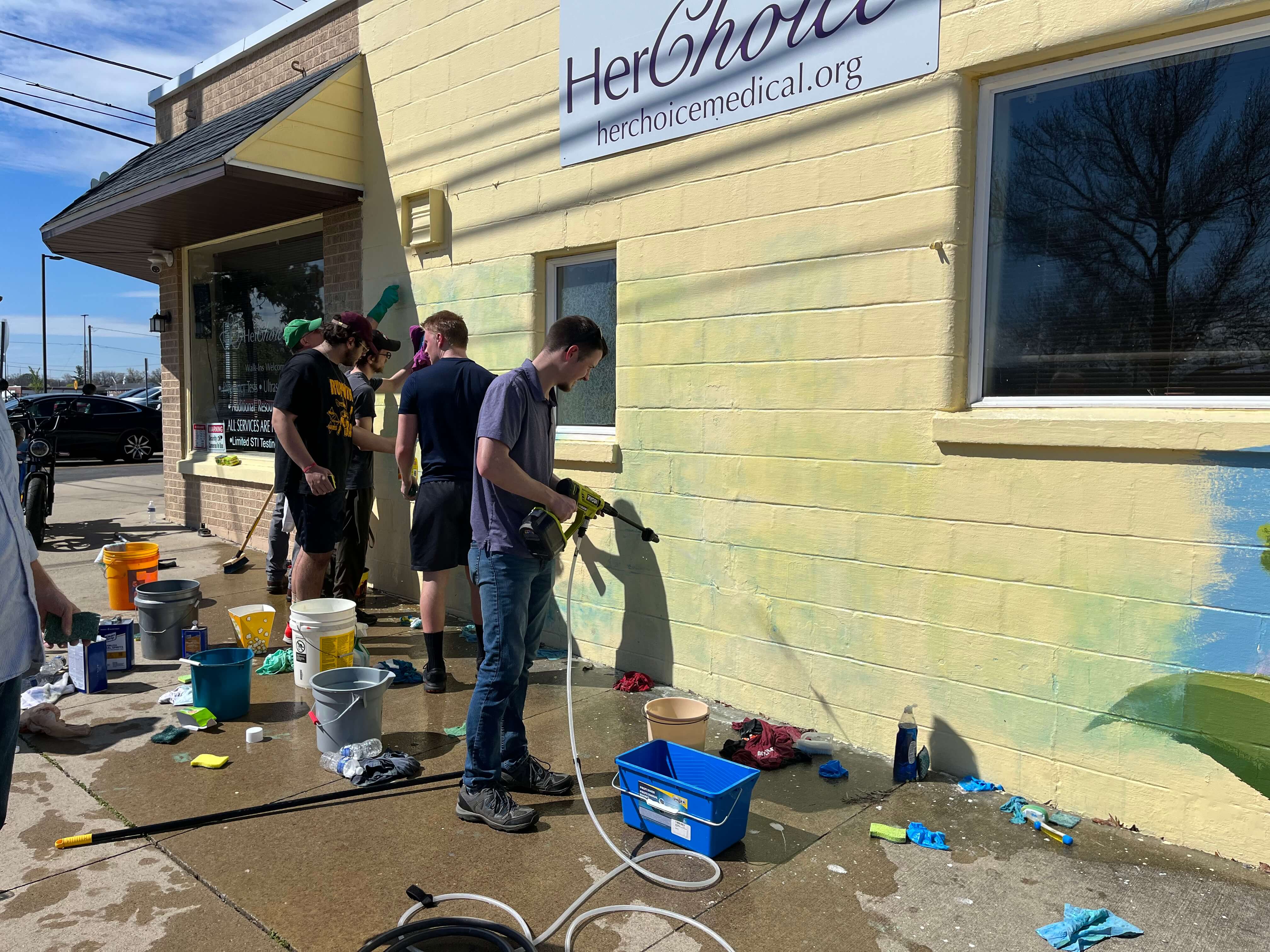 Alongside these men, students from BGSU’s Falcons for Life group came to clean up the vandalism all within hours of the discovery of the damage.