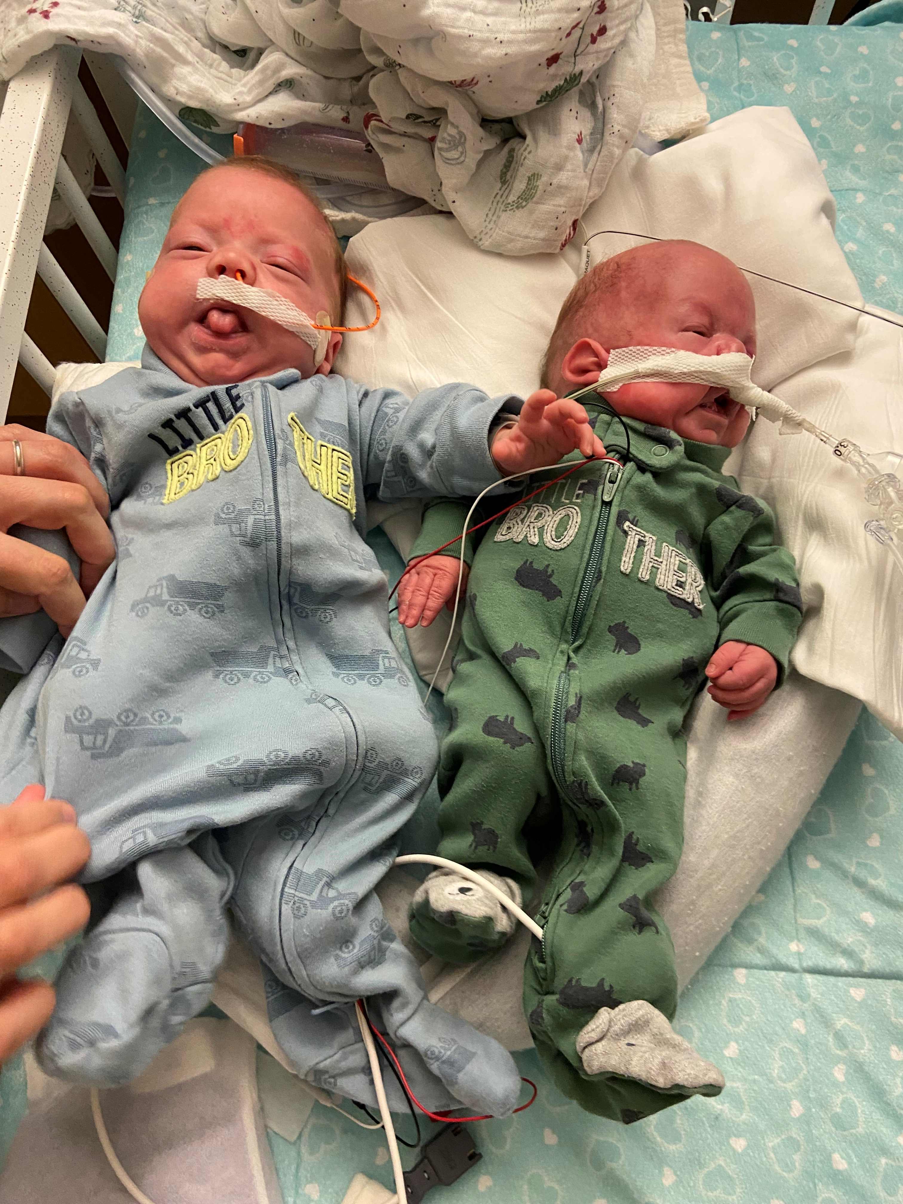 At 22 weeks Bowen began to lose more fluid. She was hospitalized and the babies were delivered at 24 weeks via emergency C-section this past January 2023.