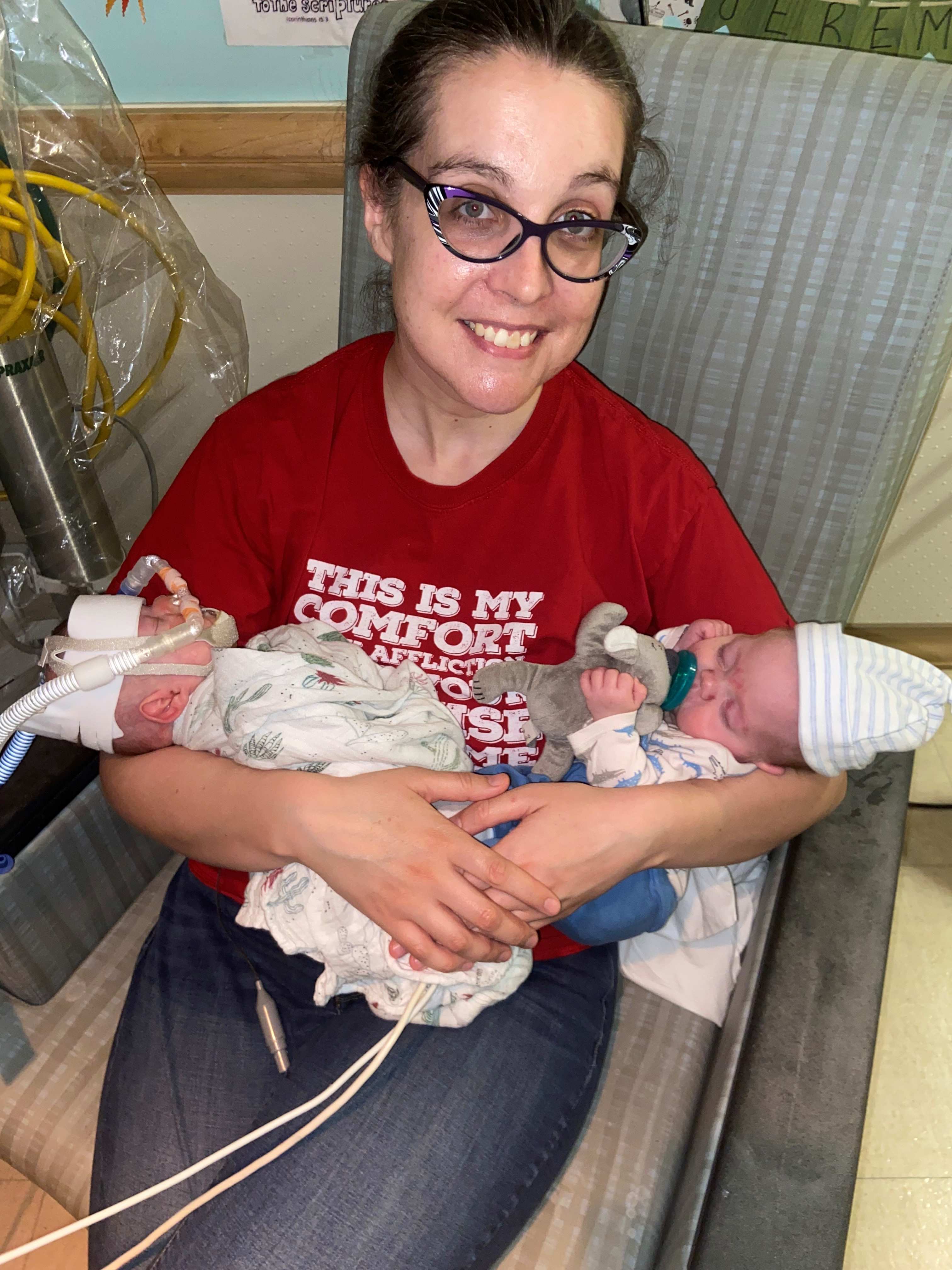 Carrying the twins for 22 weeks was no different than carrying her four biological children, she said. Holding the babies in the weeks that followed was just as significant as holding her biological children the first time.