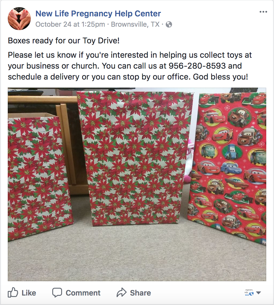 Earlier this month, New Life Pregnancy Center launched its annual community toy drive, an effort that continued this week while abortion fans protested the center from the outside.