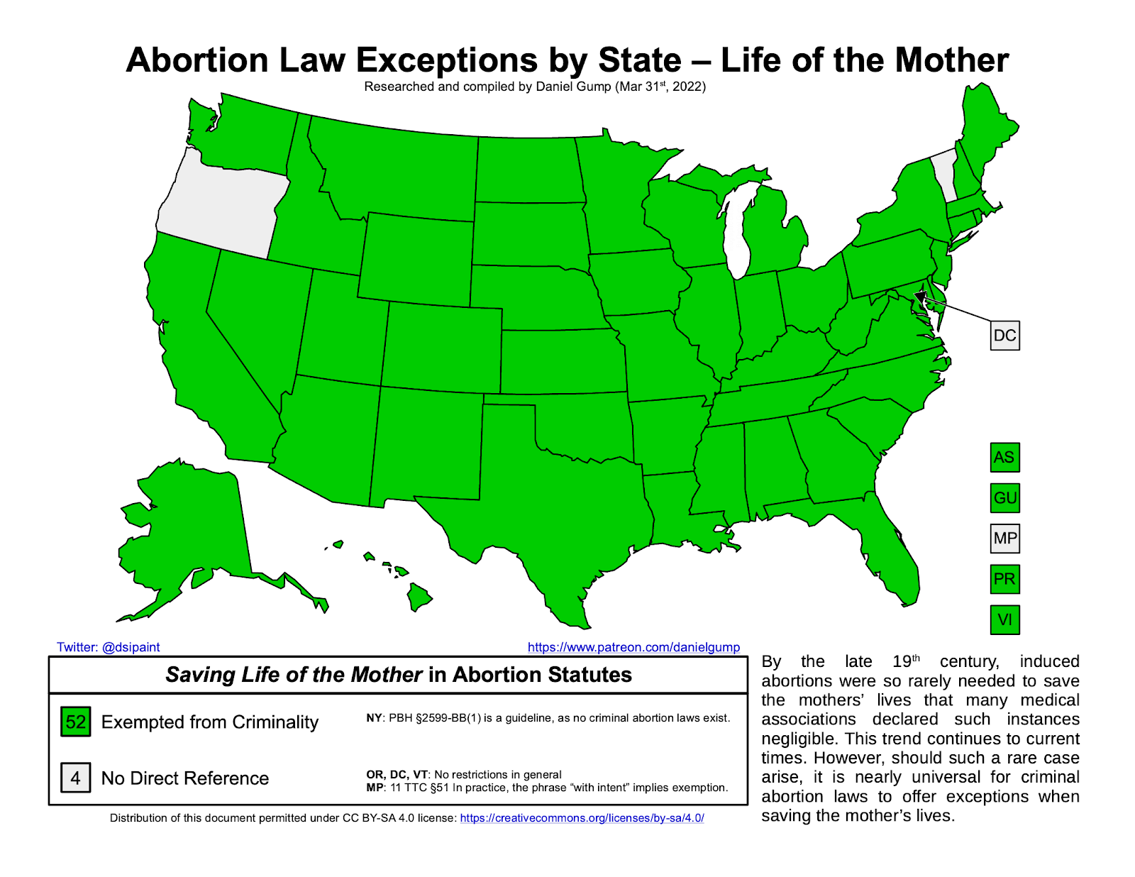 - Daniel Gump’s research on exceptions to abortion bans and regulations: maps and links to state laws