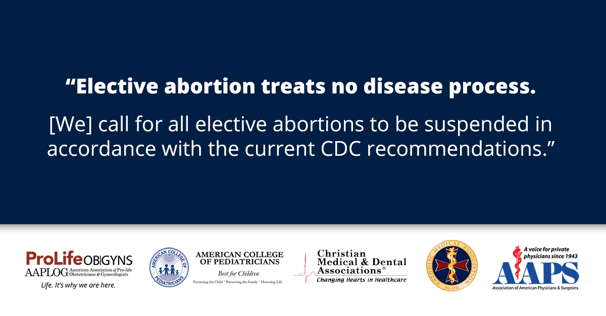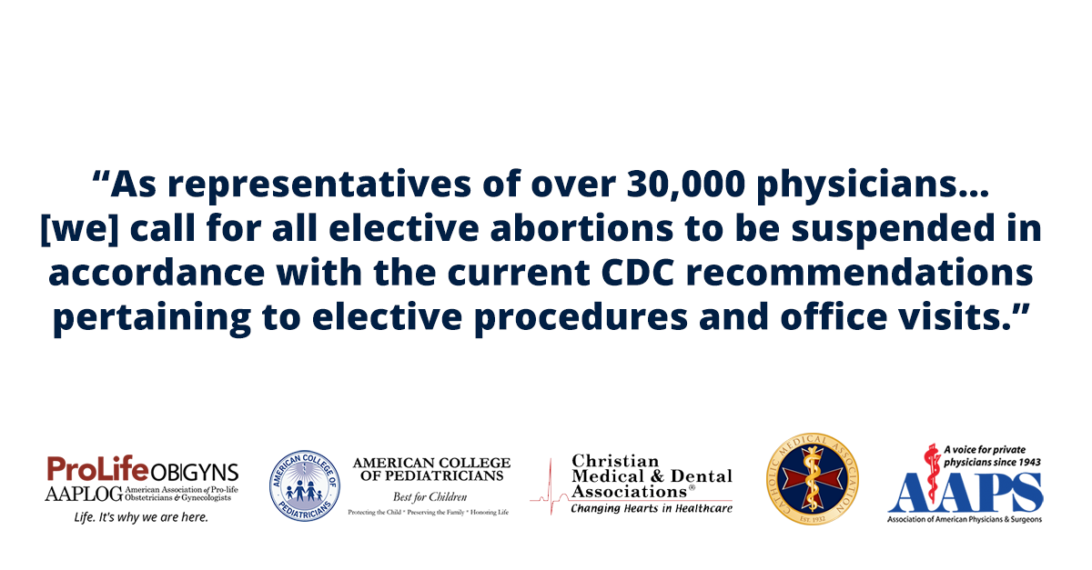 They concluded with a “call for all elective abortions to be suspended in accordance with the current CDC recommendations pertaining to elective procedures and office visits.”