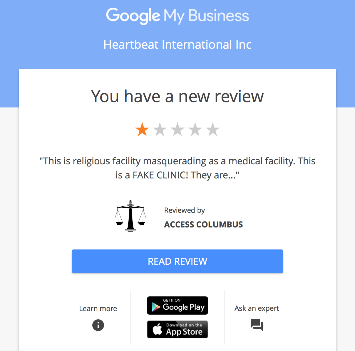 Extend Web Services and Heartbeat International then notified pregnancy centers and supporters of the situation, including instructions on how to flag false negative reviews and—just as important—gather positive reviews to bolster their online presence.