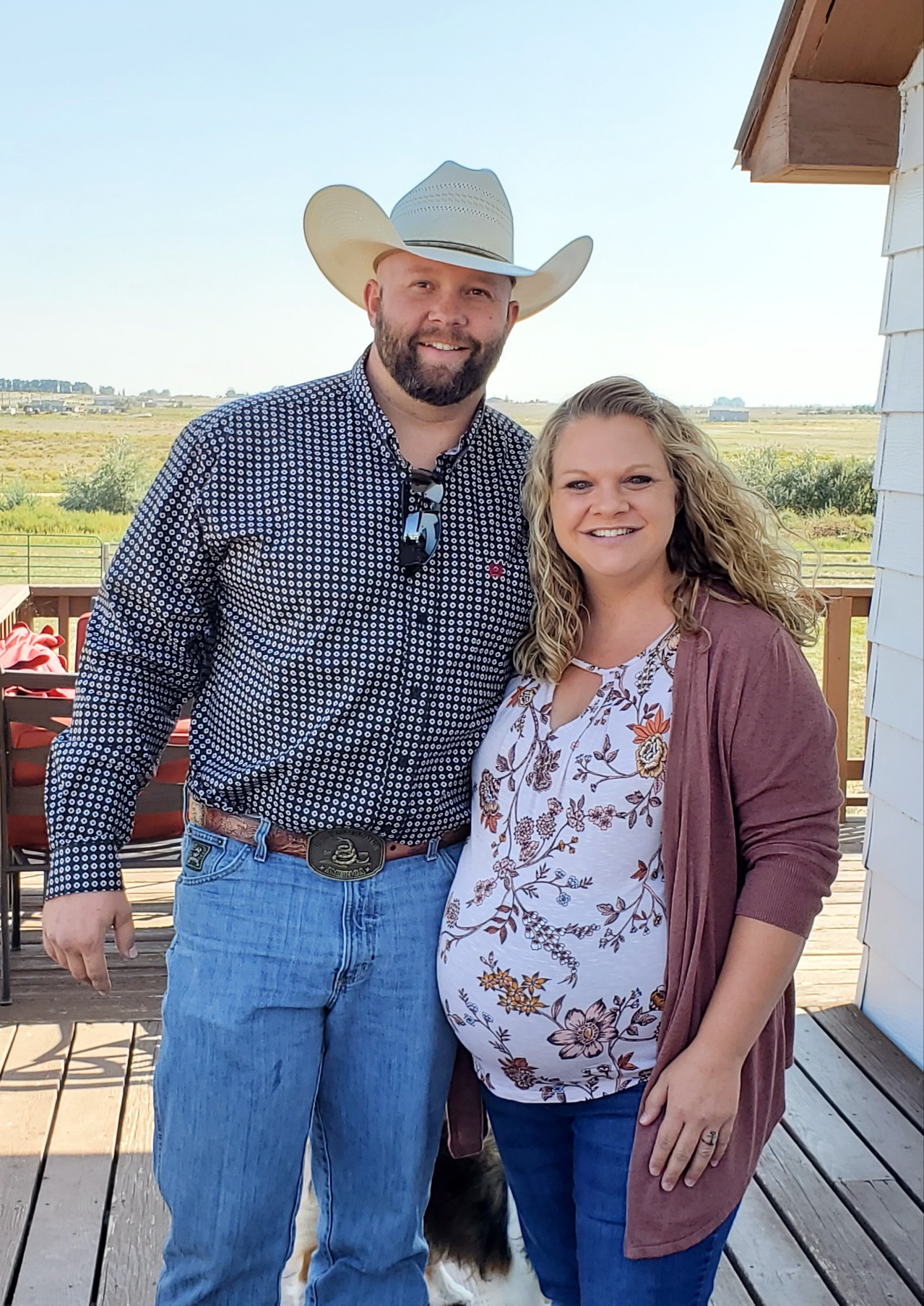 Dustin and Molly were born in Nebraska and grew up in Iowa. They run a dump truck hauling company and raise Texas Longhorn cattle. The couple moved to Wyoming in 2020, where they began their dream of owning a ranch. Molly, who loves wearing multiple hats, also works for her family medical billing business and homeschools their children. Boone’s oldest sibling is brother Cannon, 10, and sister Everlie turned three Oct. 17.