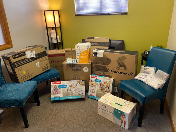 After the birth of a client’s child, PDHC provides a large gift bag filled with baby items, such as diapers, wipes, clothing, bottles, bibs, pacifiers and more. Additionally, parents who take on-line or in-person parenting classes earn points for each class and can come to the FEC, using those points to shop for additional baby items.