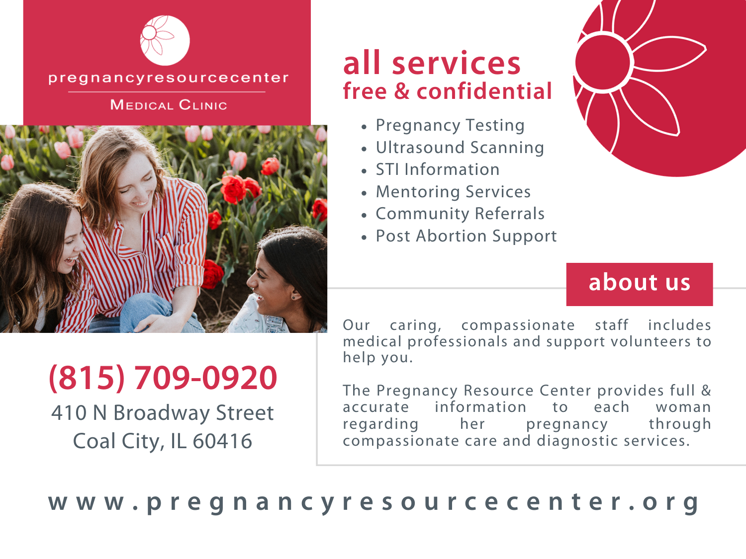 Located in Coal City, about 60 miles south of Chicago, the center is near Interstate 55, between the abortion capital of Illinois and St. Louis, Missouri, where women can also obtain abortions. Women who travel the interstate between the two cities can, and have, stopped at the Pregnancy Resource Center.