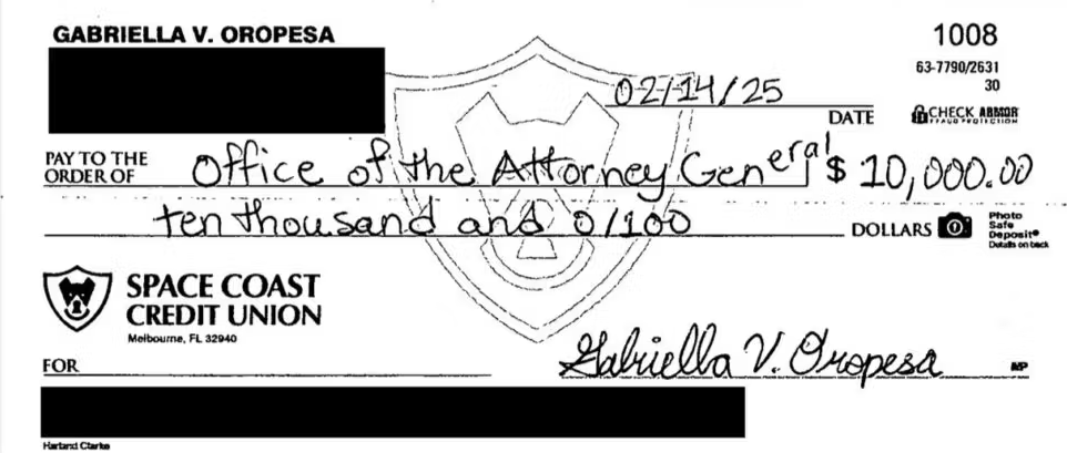 “The U.S. Department of Justice brought criminal charges against the defendants under the same Act,” Uthmeier explained in his Wednesday letter. “Three of the defendants pleaded guilty and one — the defendant whose fine I am transmitting today — was convicted by a jury.”