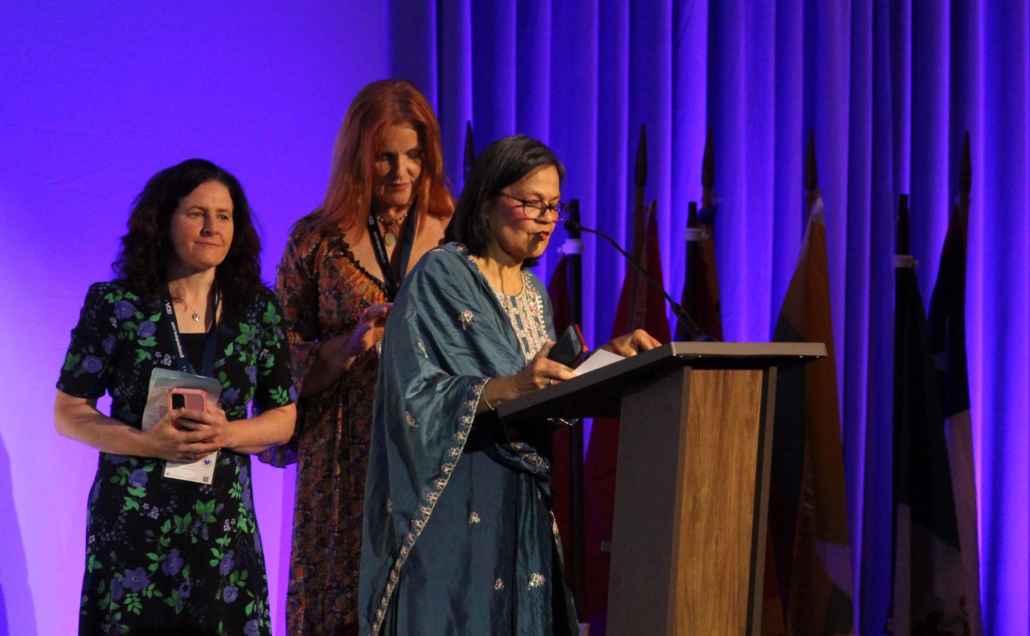 Each flag represented a country with a Heartbeat-affiliated pregnancy help organization. People from 14 nations carried their country’s flag, and other conference attendees volunteered to walk in the event carrying the other flags. All stood on-stage in solidarity, highlighting the conference theme of “United for Life.”