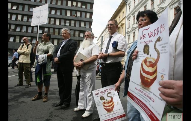 protest organized by Imre Téglásy against launching abortion pill RU 486