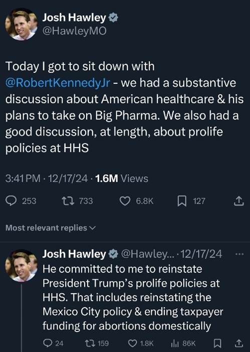 Tweet This: Will making “American healthy again” include America’s preborn citizens? It’s too early to know who will stand up for women and children.