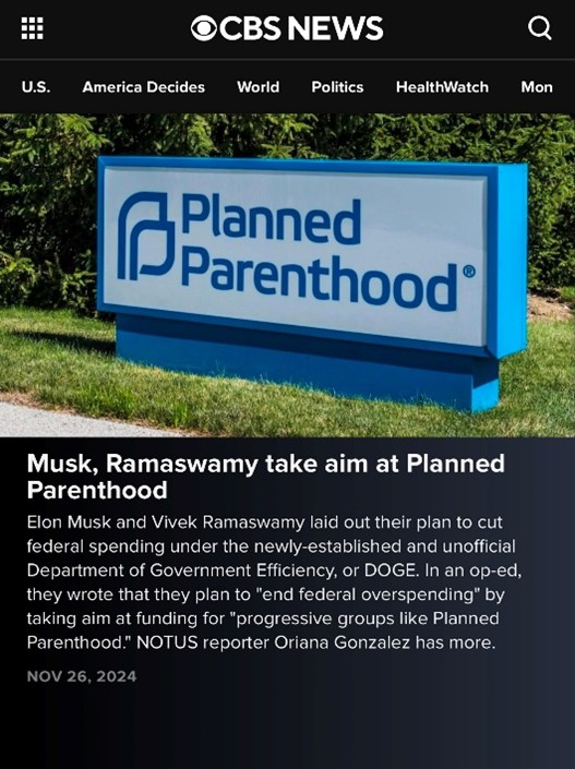 The Department of Government Efficiency reveals plan to cut Planned Parenthood Funding