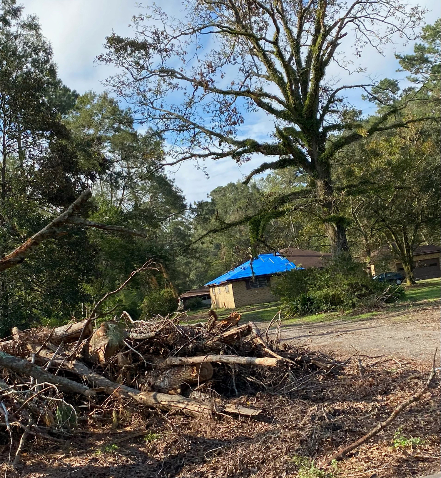 April Bell, director of Restoration House, said their building sustained mostly roof leaks. A large tree in the front yard remained upright whereas trees around the community collapsed, and many fell on homes and businesses.