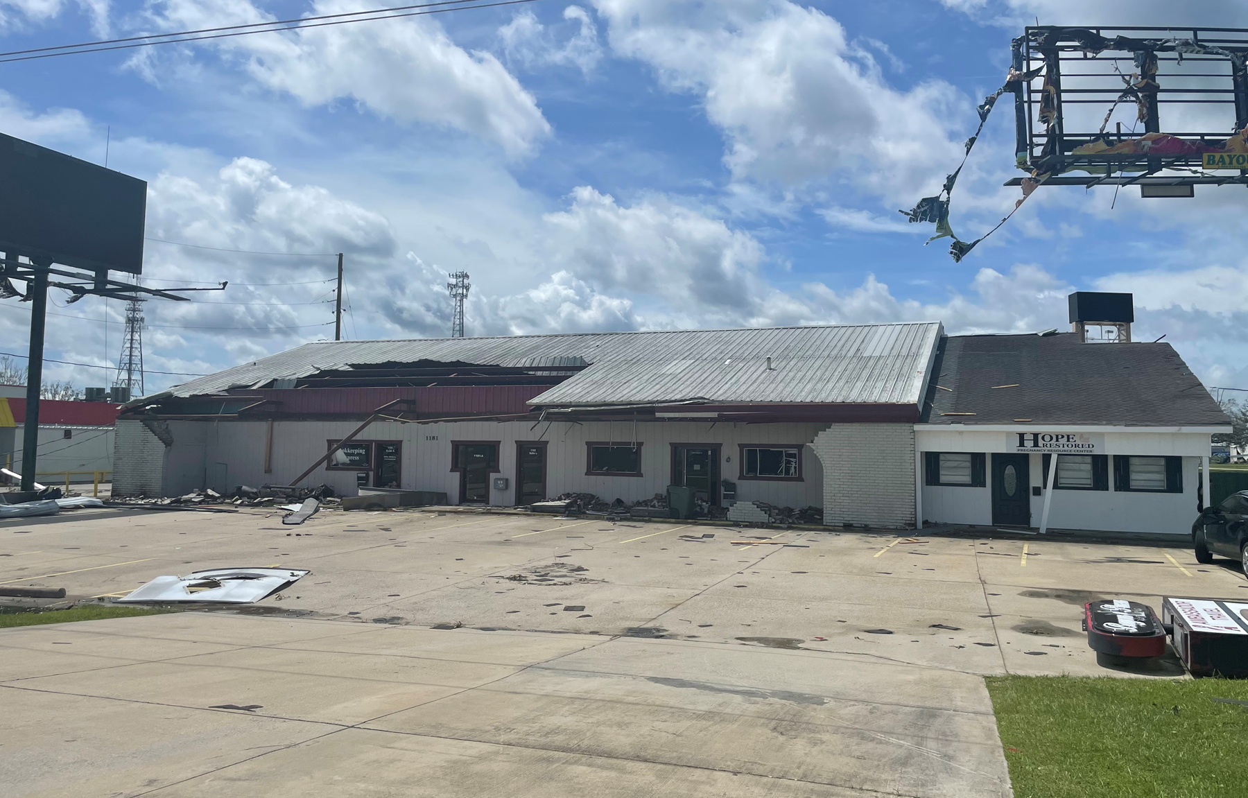 Hurricane Ida hit southern Louisiana as a Category 4 storm on Sunday, August 29, exactly 16 years after Hurricane Katrina. The community of Houma, population 32,000, sustained devastation. Hope Restored Pregnancy Resource Center, however, survived while the buildings nearby were destroyed, and the center now seeks to restore hope to the besieged community.