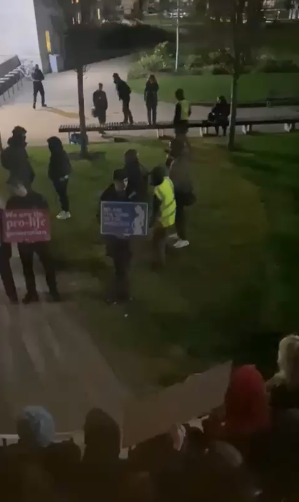 The Pro-Life Society was able to find an alternative venue near to the university campus. It was about two hours before they left and conducted the event elsewhere and the crowd of pro-abortion protesters persisted throughout.
