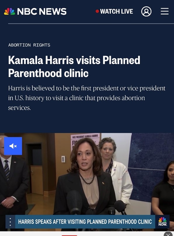 Serving under Joe Biden, she made abortion a focal point of her tenure as the country’s first female vice president. She embarked on a nationwide “Reproductive Freedoms (AKA abortion) Tour” and became the first vice-president to visit an abortion facility. At her Planned Parenthood visit, she seemingly celebrated that thousands of children have lost their lives within these clinics.