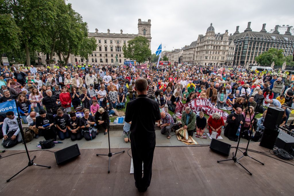 Following stirring speeches from an evangelical pastor, Ebow Essel and March for Life UK co-director, Isabel Vaughan-Spruce, the last words of the day were left to Bishop Paul Swarbrick of Lancaster. He warmed to the crowd, or maybe it would be more correct to say that they warmed to the bishop and were told of a saying he learnt while serving on the African missions, the saying meant ‘the river is filled with little drops of rain’. Bishop Paul then called for prayer and the crowd that packed Parliament Square fell to their knees. As I looked over the thousands of heads bowed in prayer, I couldn’t help but think if the pro-lifers were meant to represent the drops of rain then it seemed fair to say that the river is clearly growing in strength and is a force to be reckoned with.