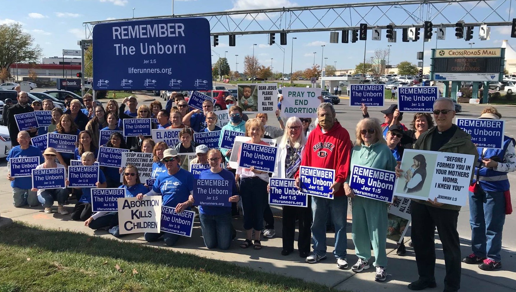 Ablaze founder Fr. Michael Voithofer had placed the LIFE Runners “REMEMBER the unborn” sign at the entrance of the Ablaze location where Jessica was headed.