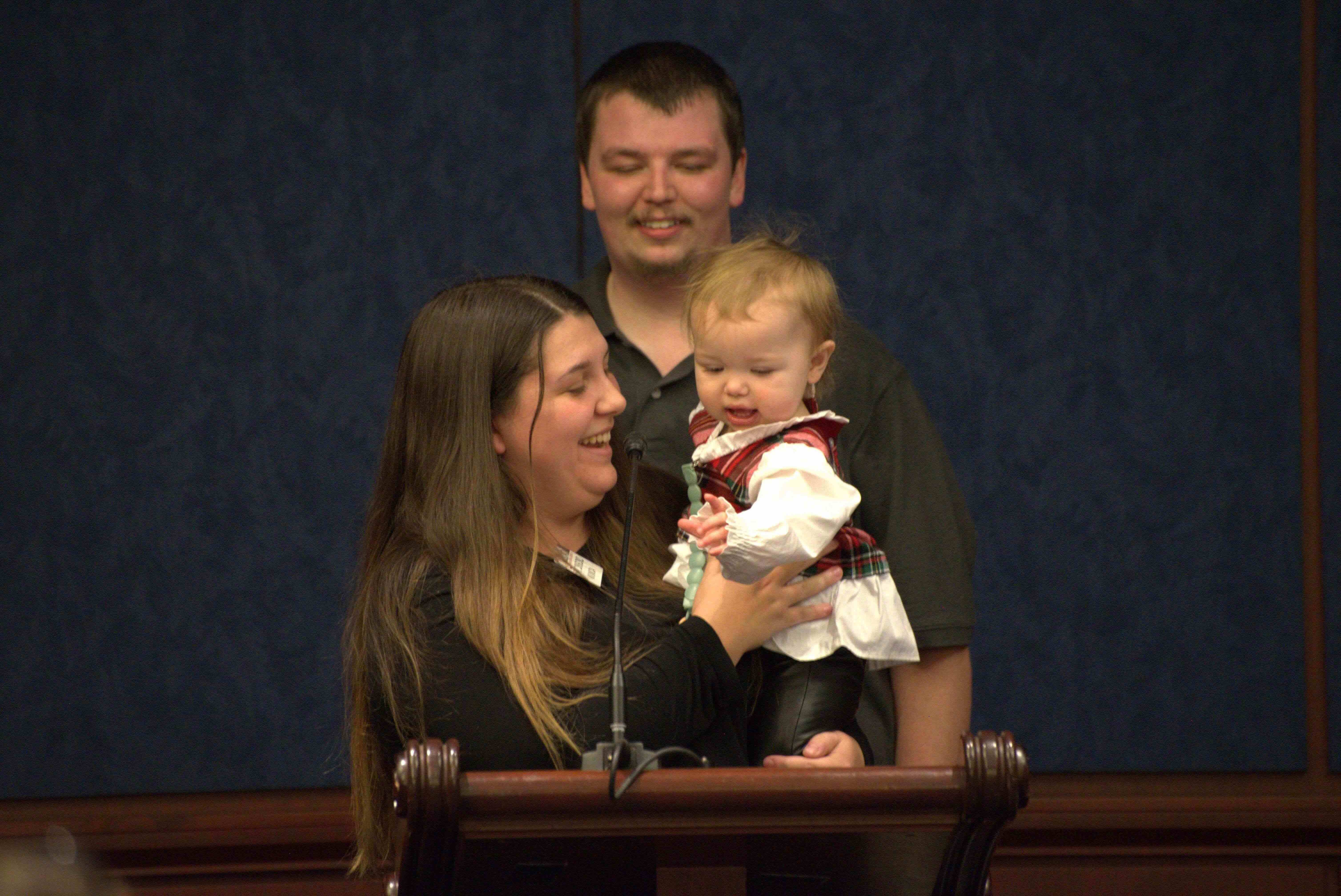 Kateynn then had her husband Aaron and their little girl Aubrie, born August 24, 2022, join her at the podium.