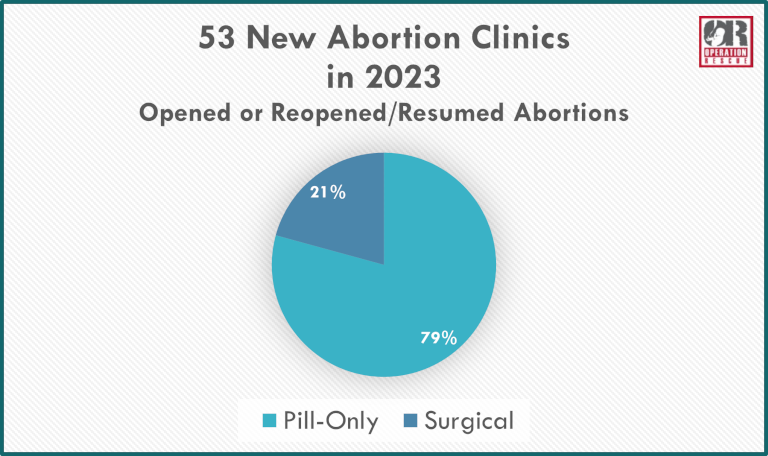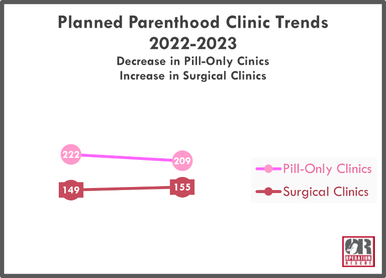Since 2009, Operation Rescue has documented a continued shift away from surgical abortion clinics, while pill-only clinics continue to increase in number.