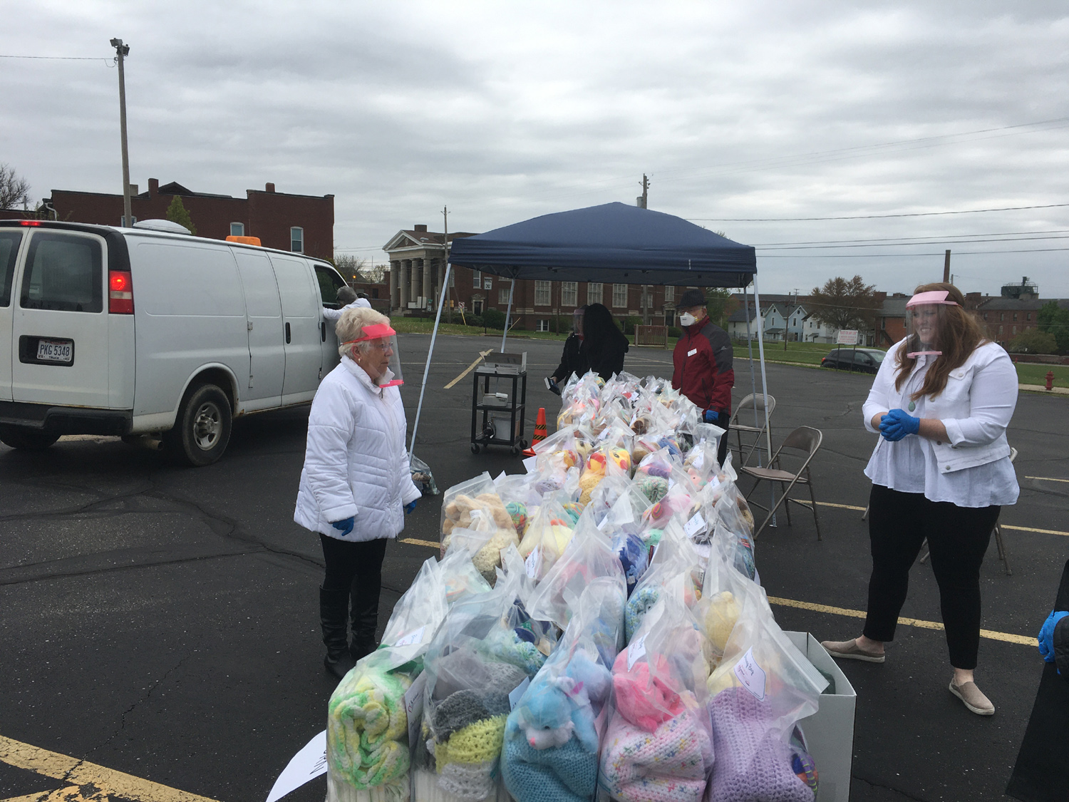 This drive-through community event was held in the parking lot of a local church. Miller and her helpers wore masks and gloves in keeping with pandemic restrictions, and those needing supplies stayed in their cars.