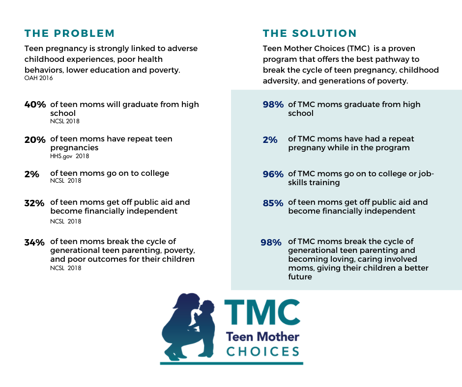 One week after praying about it, an article came across her desk about Teen Mother Choices International (TMCI).
