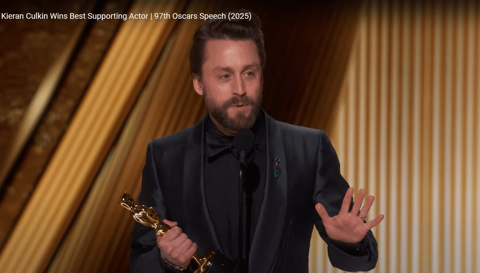 (LAN) Actor Kieran Culkin — whose career began in the “Home Alone” franchise in which he appeared as the younger cousin of his real life brother Macaulay Culkin — recently swept awards season with a Golden Globe, a New York Film Critics Circle award, a SAG award, and the Academy Award for Best Supporting Actor for his role in “A Real Pain.” He used his Oscars speech to remind his wife of their deal to have more children after he won.