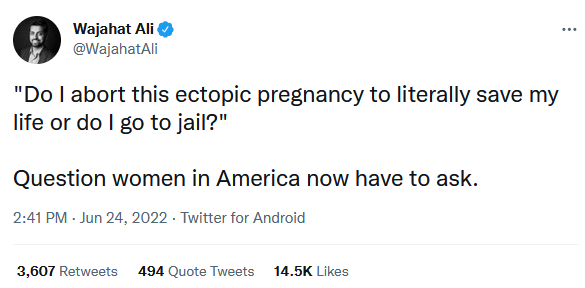 Tweet This: The only reason to purport fictions about ectopic pregnancy, abortion, and miscarriage is to spread mass hysteria to promote abortion.
