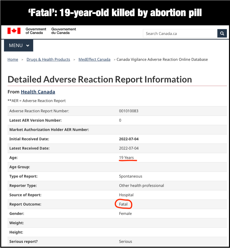 It’s time to pull Mifegymiso and the Mifepristone/Misoprostol abortion protocol off the market. Canadian women’s lives matter. How many more women will be seriously harmed and even killed before Health Canada acknowledges the data and decides to act?