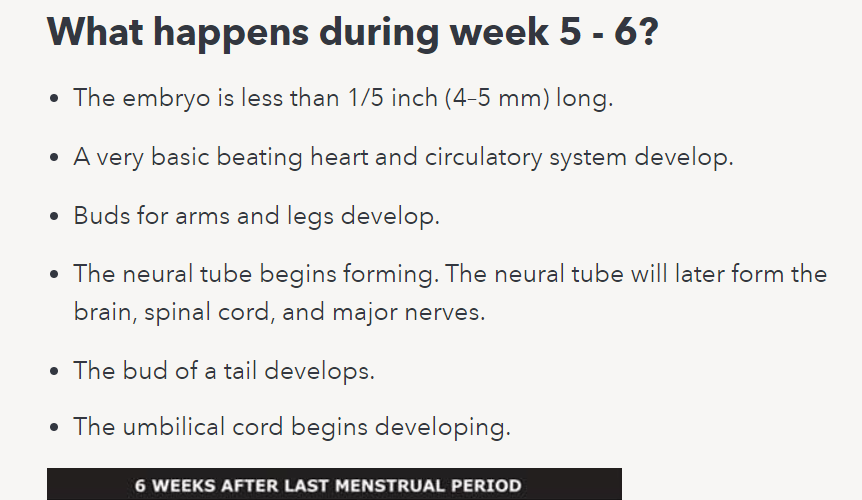 Its archived statement had acknowledged that at weeks 5-6 of pregnancy, "A very basic beating heart and circulatory system develop."