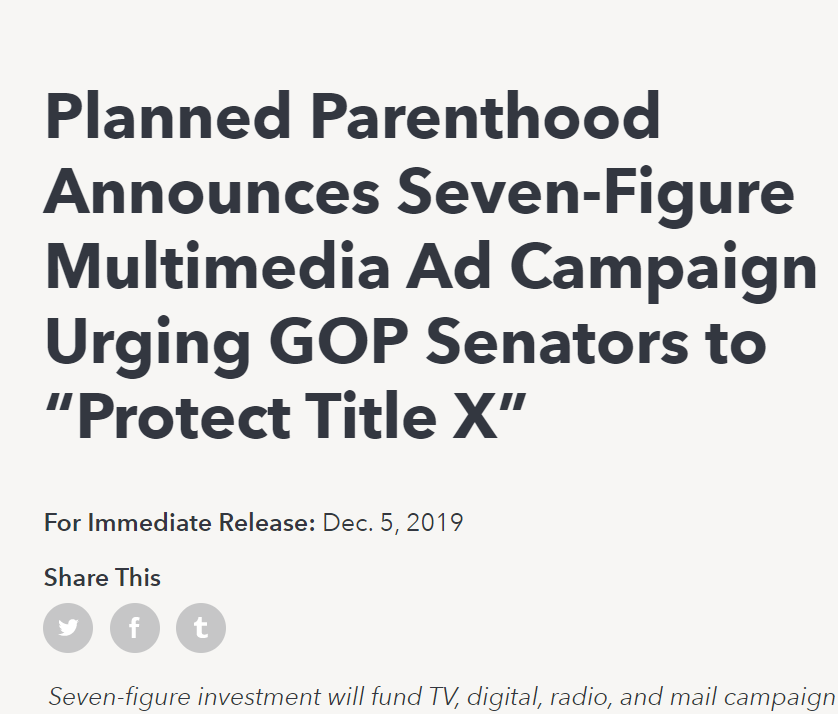 Tweet This: "Planned Parenthood garnered just over $616 million in government subsidies, up from last year’s $543.7 million"
