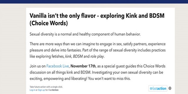 Planned Parenthood often shares posts which discourage sexual boundaries and promote BDSM and kink.