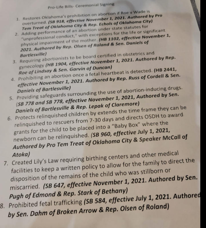 “It was an honor for Oklahoma pregnancy center workers to participate in this historic day for our state,” stated White. “Twenty-twenty-one has been the most pro-life legislative year in Oklahoma history.”