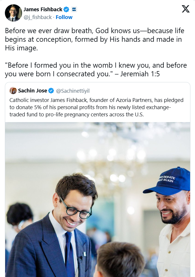 With a personal call to assist women in unplanned pregnancies, James Fishback, founder of Azoria Capital, Inc., has pledged to donate 5% of profits from his fund to pregnancy centers.