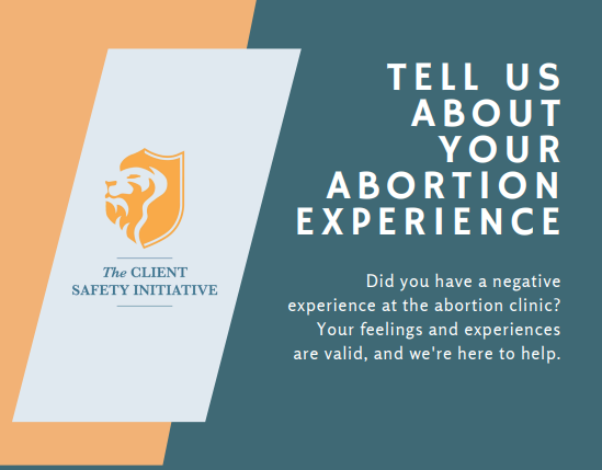 The Client Safety Initiative provides free assistance to women who have had negative experiences at abortion facilities by helping them submit complaints to state and federal oversight agencies.