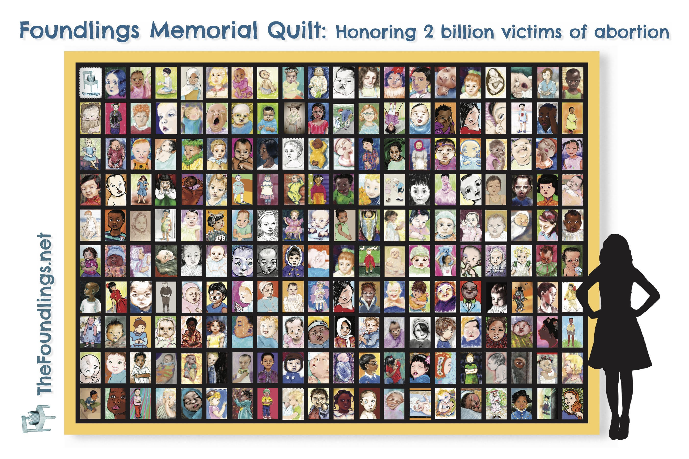 She draws the faces of children lost to abortion as they come to her. The goal is to create and manufacture an 11x14-foot quilt with hundreds of images printed on museum-quality inks and fabrics. They have chosen an “awesome” quilter, Michelle said.